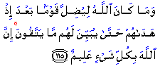 (Repentance) In dealing with men, God first explains to them the doctrines and practices which they should shun. However, if they persist in their wrong ways, God withholds Himself from guiding them and lets them follow the wrong ways they choose to follow. This verse embodies a basic principle which can help one understand all those Quranic verses in which both guiding people to the right way and causing people to go astray are mentioned as God's own acts. To provide guidance on God's part consists of enunciating the Right Way through His Prophets and Scriptures, and then enabling those who are willing to follow that way to do so. Likewise, God's act of causing people to go astray means that God does not compel those who insist on not following the Right Way after it has been made plain to them, and enables them to proceed in the direction they have decided to proceed in. Source: |