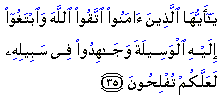 In this verse the believers are urged to solicit all means which might bring them close to God and enable them to please Him. The English imperative 'strive hard' does not do full justice to the actual word used in the Quran: jahidu. The verbal form mujahadah signifies and carries the nuance of doing something in defiance of, or in opposition to someone. The true sense of the Quranic injunction 'strive hard' in the way of Allah is that the Muslims ought to use all their strength and engage in vigorous struggle against those forces which either forcefully prevent them from living in obedience to God or force them to live in obedience to others than God. It is this struggle which is likely to lead man to his true success and bring him to a close relationship with God. This verse directs the believer to engage in a ceaseless, multifrontal struggle. On one side is the accursed Satan with his horde. Then comes the animal spirit of man, with its defiant and refractory desires. Then there are many men who have turned away from God, but with whom one is linked by social, cultural and economic ties. Then there are false religious, cultural and social systems which rest on rebellion against God and which force man to worship falsehood rather than Truth. These rebellious forces use different means to achieve their end, but those ends are always the same - to make men serve them rather than God. But man's true progress and his attainment of close communion with God depends entirely on his total obedience to God, on his serving God unreservedly in the inner as well as in the external aspects of his life. He cannot achieve this objective without engaging in simultaneous combat with all the forces which are defiant and rebellious towards God, carrying on an unceasing struggle against them and trampling down all obstructions to his advancement along God's path. Source: |