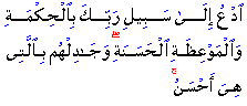 Wisdom implies that one should be mindful of the sensitivities of the people being addressed, have an understanding of their backgrounds, beliefs and ideas, and employ the most appropriate and effective methods and channels of communication. It is evident that all noble Prophets of Allah employed a variety of methods for sharing Allah's message, but with wisdom. In fact, the Prophets of Allah made use of all the means available to them for amplifying their message in society and, hence, attempted to reach out to a wider audience. As an illustration, in order to share his message, the Prophet Muhammad met people on a one-to-one basis, visited them in their homes and made contact with them at public places, for example, at trade fairs and social functions. He also organised special meetings and dinners to share his message. He employed a variety of tools and methods for delivering and sharing his message. In the present day context, the new information and communications technologies and the mass media can be employed as tools for advancing the Islamic message in society. Novel styles, manners and techniques must be developed so that views based on Islam can be presented effectively and have an impact. There is, therefore, ample room for innovation and creativity in this area. Source: |