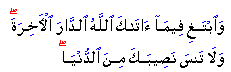 God has given you, the home of the Hereafter, and forget not your portion