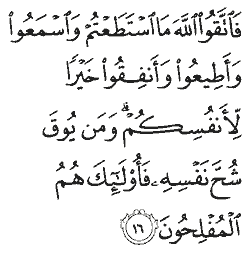 Al-Taghabun (Mutual Loss and Gain) - Chapter 64: Verse 16