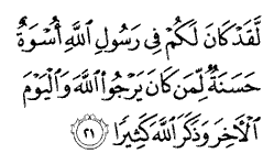 "Indeed, in the Messenger of God there is an excellent model for you - for whoever is hopeful of God and the Last Day and remembers God much."